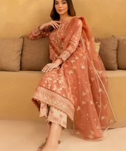Peach Glam 3Pc(Stitched) – Embroidered Khaddar Dress (Ready Dress)