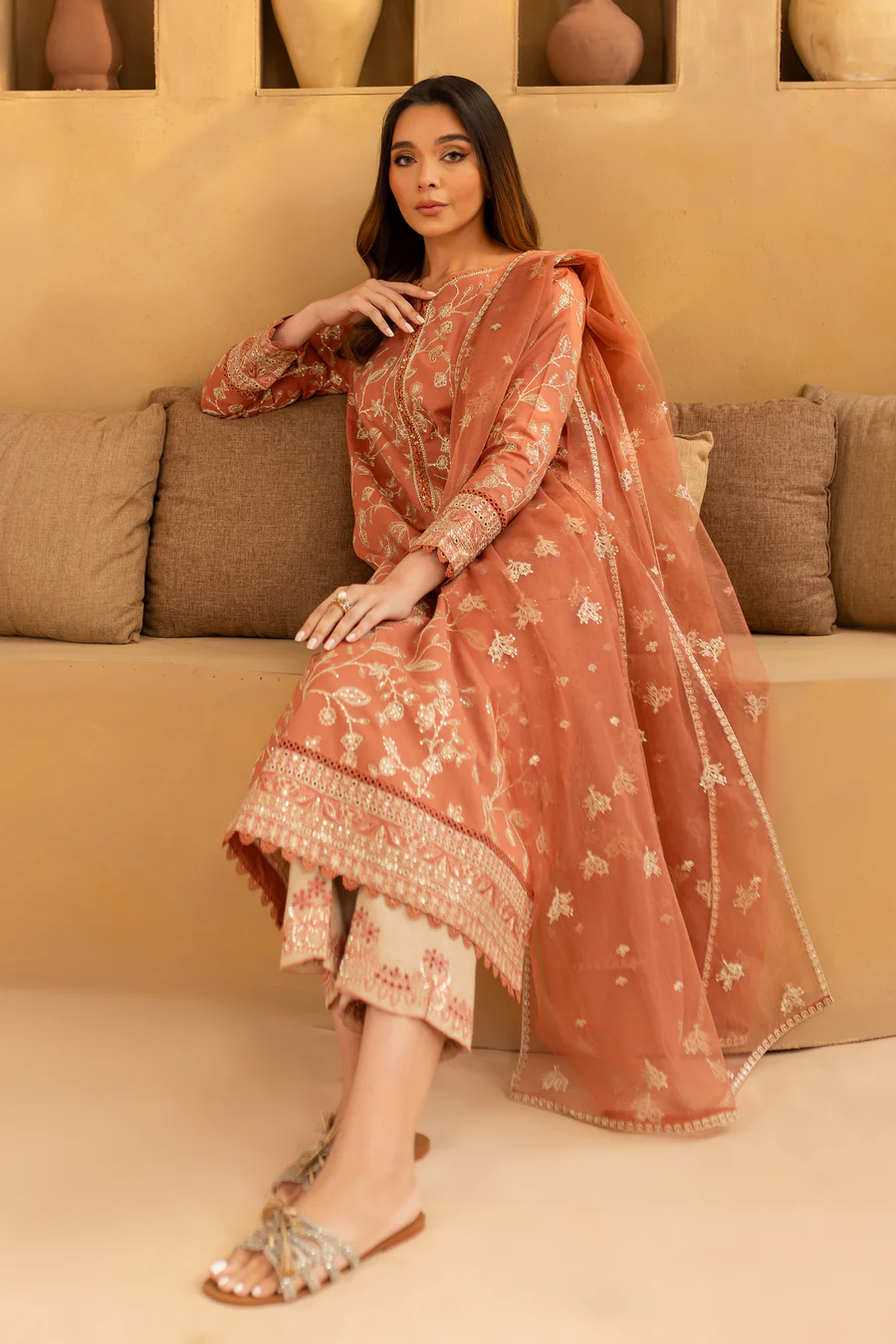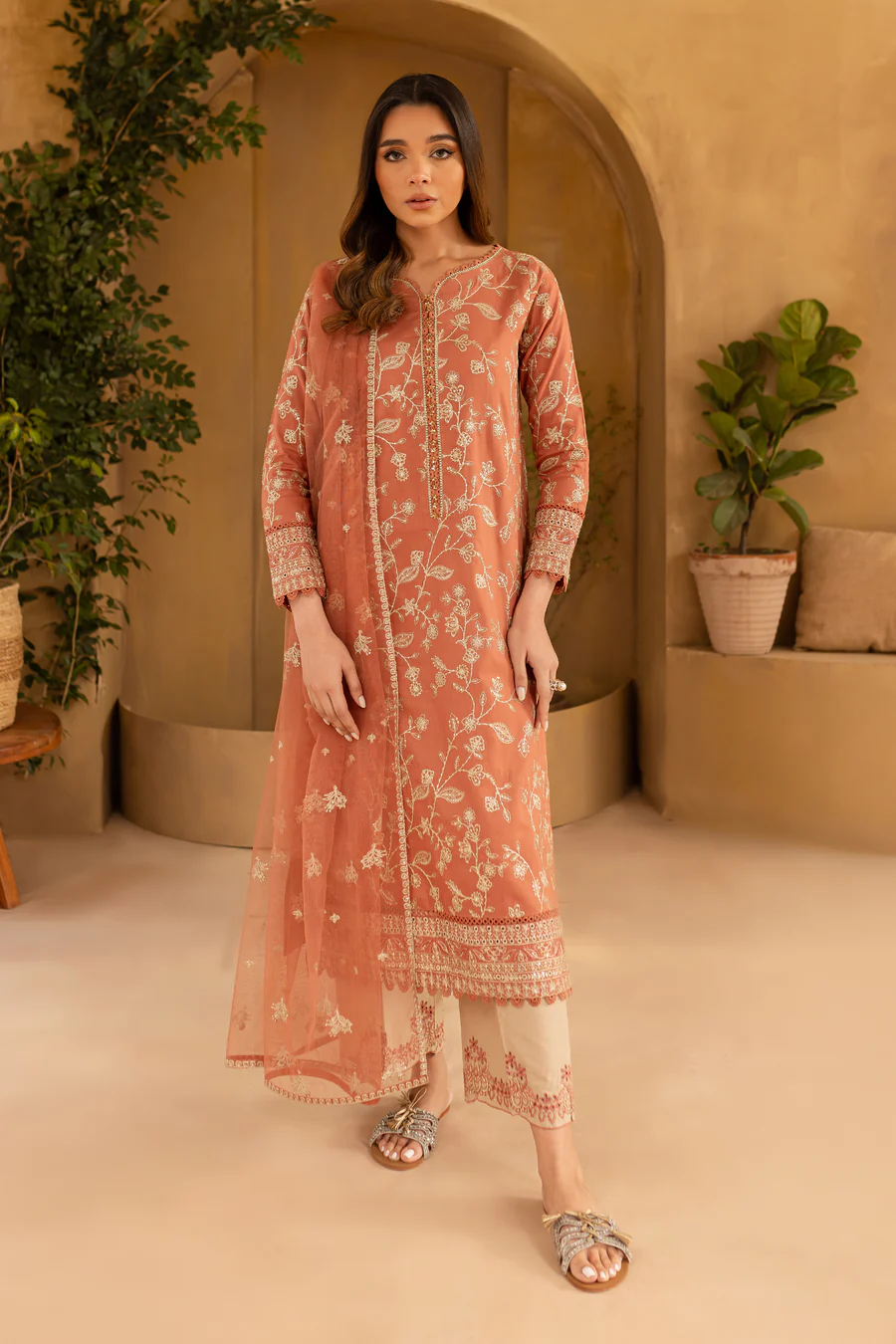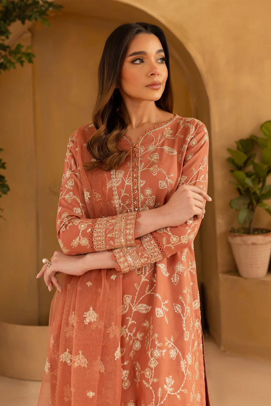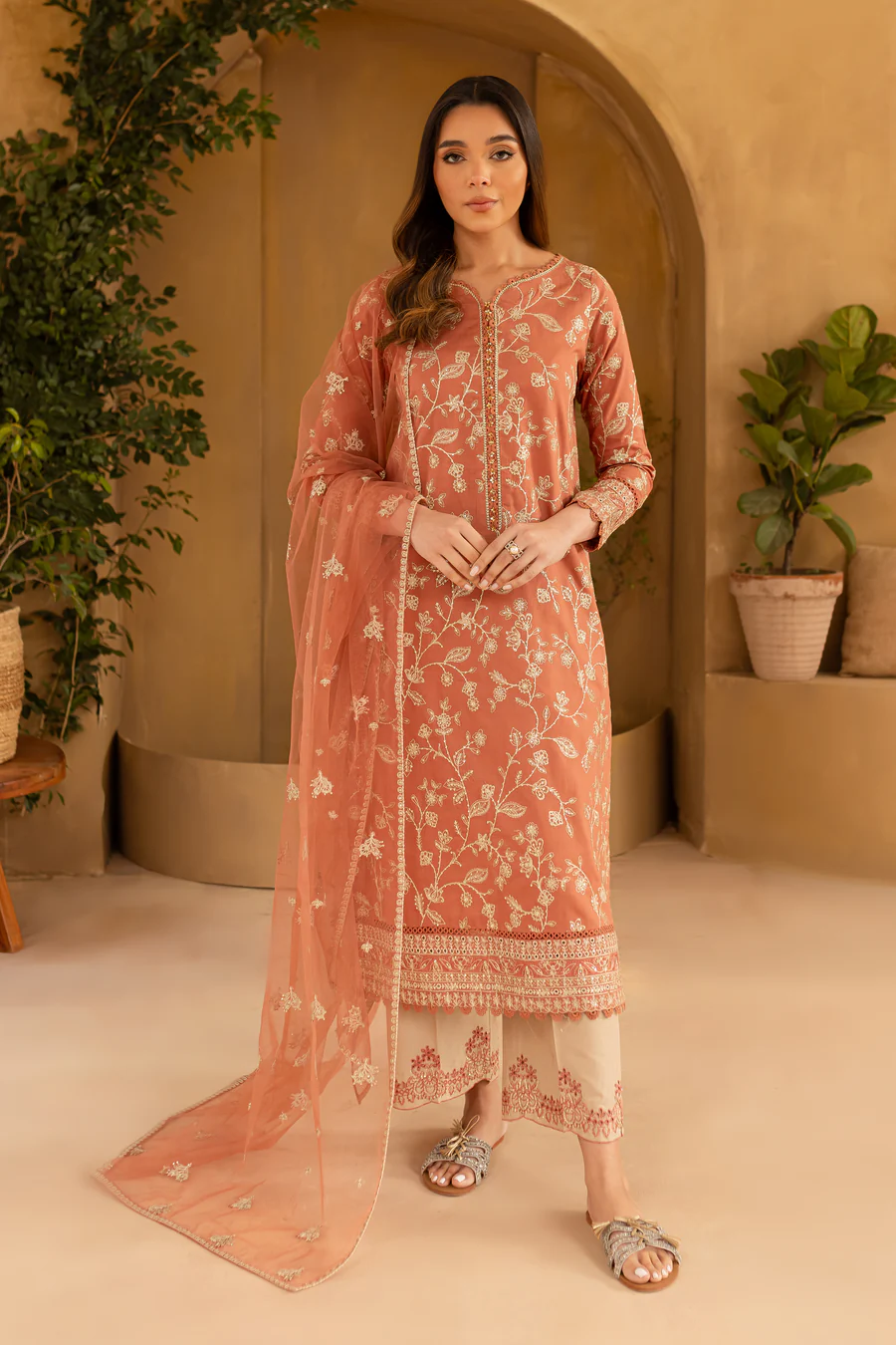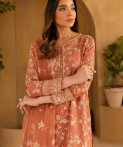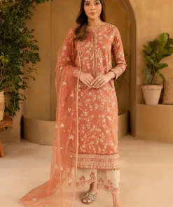 Peach Glam 3Pc(Stitched) – Embroidered Khaddar Dress (Ready Dress)